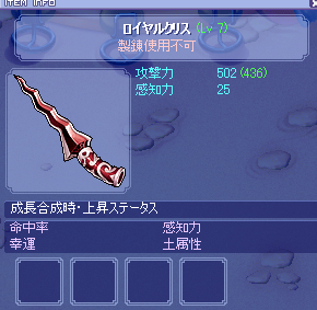 同居人(以下AIBO)がトリスタブログをはじめたので たまごぷりんも勢いではじめちゃいましたw もともと三日坊主のたまごですので、途中で・・・(以下略) というか、誰も見ないでしょうけどw とゆことで早速・・・ 今週のメンテで、SL4クリス目当てで薔薇塔に逝ったところ、 なんとロイヤルクリスSL4マヂで出ちゃった・・・^^; うちのドラゴンで行ったんだけど、あの子結構不運だったのに・・・ とりあえず、AIBOにキオスで攻撃502にしてもらい(100M位使った) 精錬でLV5まで上げてもらった^^ もちろんリペアパウダー使いまくったけどねw んで、今日精錬したらLV8で失敗しちゃった 来月に土属性付けて、ウサたんに装備させる予定^^ 獅子 LV158 → LV161 TM133 → TM134 |
